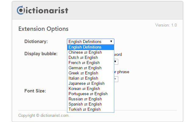 Add the Dictionarist double click dictionary chrome extension to your browser and just double click on a word to view its translations or definitions.